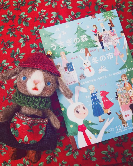 おはようございます。 12月21日〜27日まで、阪急うめだ本店うめだスークにてうさぎの森の冬の市に参加します☺️🐰 よろしくお願いします。 @AMULETomise #うさぎの森の冬の市 #羊毛フェルト