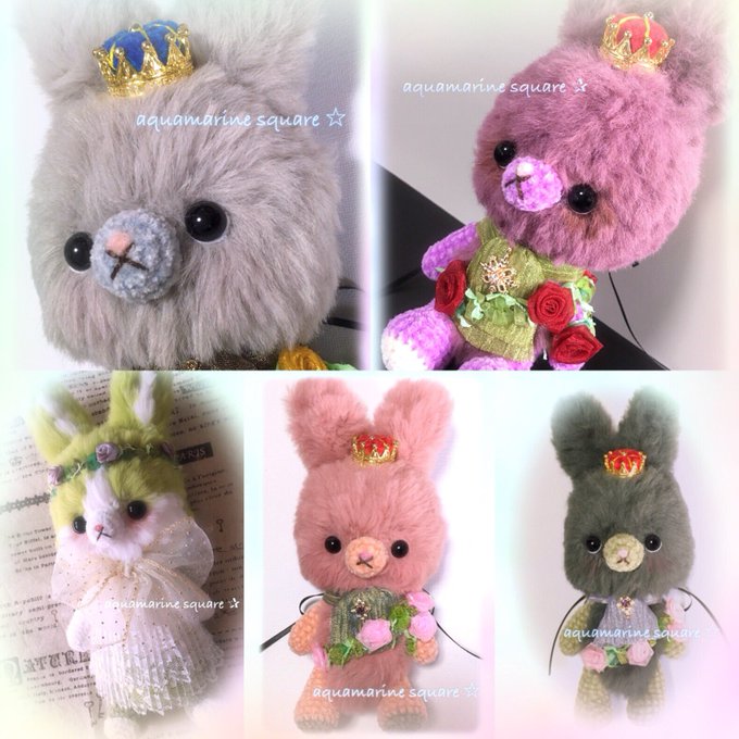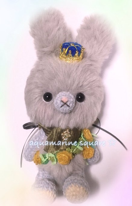 「#うさぎの森の冬の市」追加納品分 「薔薇の王子」シリーズ サイズ約20cm 王冠は会期中外れないようミニピンで留めています つるバラはアジャスターで繋いであるので巻き付け方を変更可能 25日まで通販受付もしています(画像をご覧下さいませ) #あみぐるみ #うさぎの森の冬の市aquamarine作品