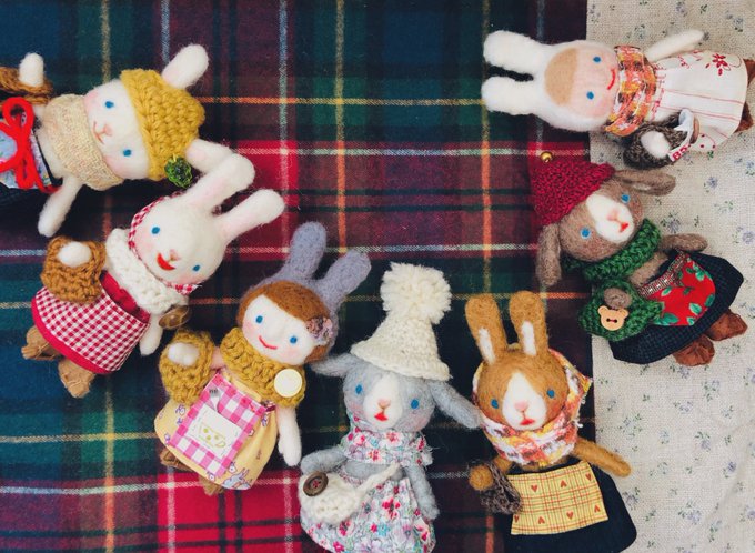 大阪へ人形などなど旅立ちました。阪急うめだ本店にて開催の「うさぎの森の冬の市」、会期は12月21日〜27日ですが、22日〜25日の通販用にお知らせします。 人形は約13センチ✖️約7センチ 金額は全て税込3850円です😌。 #羊毛フェルト #うさぎの森の冬の市