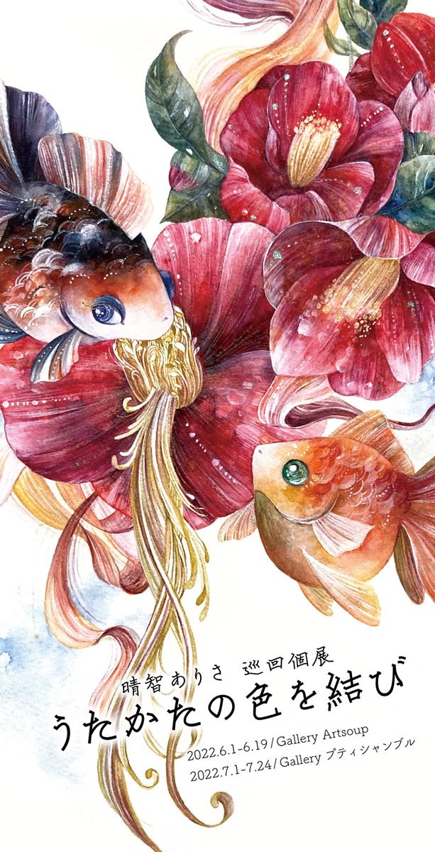 🌺巡回個展のお知らせ🌺 #うたかたの色を結び 🔷会場と会期 2022.6.1-6.19:Gallery Artsoup 2022.7.1-7.24:Galleryプティシャンブル 変化、流れ、色彩などがテーマの個展となります。 #金魚美抄2020 で出展した作品を中心に、 2020年から現在までに制作したものを展示販売します。