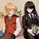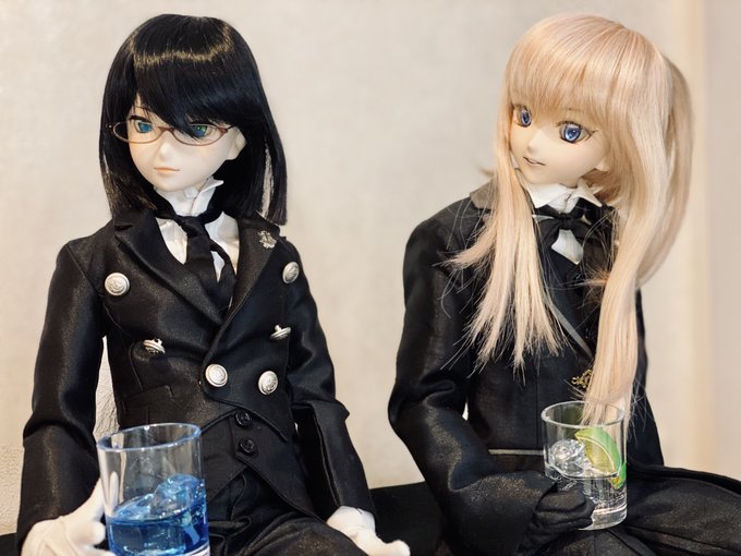 #今夜のドール撮影120分一本勝負 6/2のお題【 かたむける 】 「お前とグラスを傾けることになるとはな…紗南と会えないのが、そんなに辛いのか?😒」 「作並…お嬢様と言いなさい😠」 「…はい😟」 #うちのこかっこいい