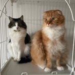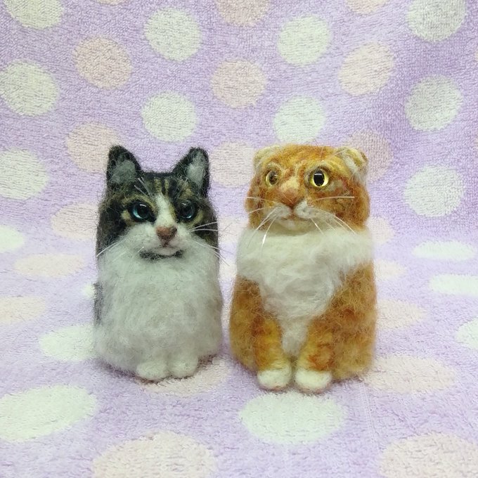 “だるまこたろうくん人形”と“だるまりんちゃん人形”のツーショット🎶 製作、楽しかったなぁ🎵✨😍 #ハンドメイド #羊毛フェルト #うちのこオーダー #猫 #スコティッシュフォールド #ノルウェージャンフォレストキャット #人形 #だるま人形