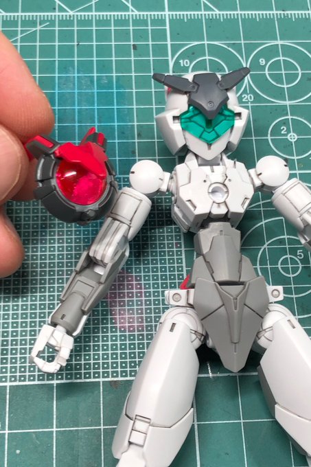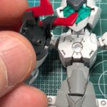 ガンダムエクシア ダークマターの残り部品から、胸パーツを眺めてると…スピナティアに いけるかな?でも軸径が合わないかな…あれ?なんだか取り付けられました!( ´ ▽ ` )良い具合に収まってます〜! #30MM #うちのこシスターズ #ガンプラ