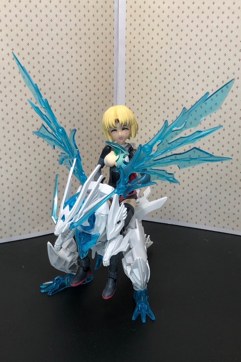 SDWHシャイングラスパードラゴン、組み立てたからには うちのこに乗ってもらいましょ!٩(ˊᗜˋ*)و £^ᴗ^)「えへ〜!すご〜い☆かわいい〜♪」#30MS #うちのこシスターズ 立ち姿勢でも 飛行姿勢でも、けっこう上手く乗れました!(*´ω`*) #ガンプラ #SDガンダムワールドヒーローズ