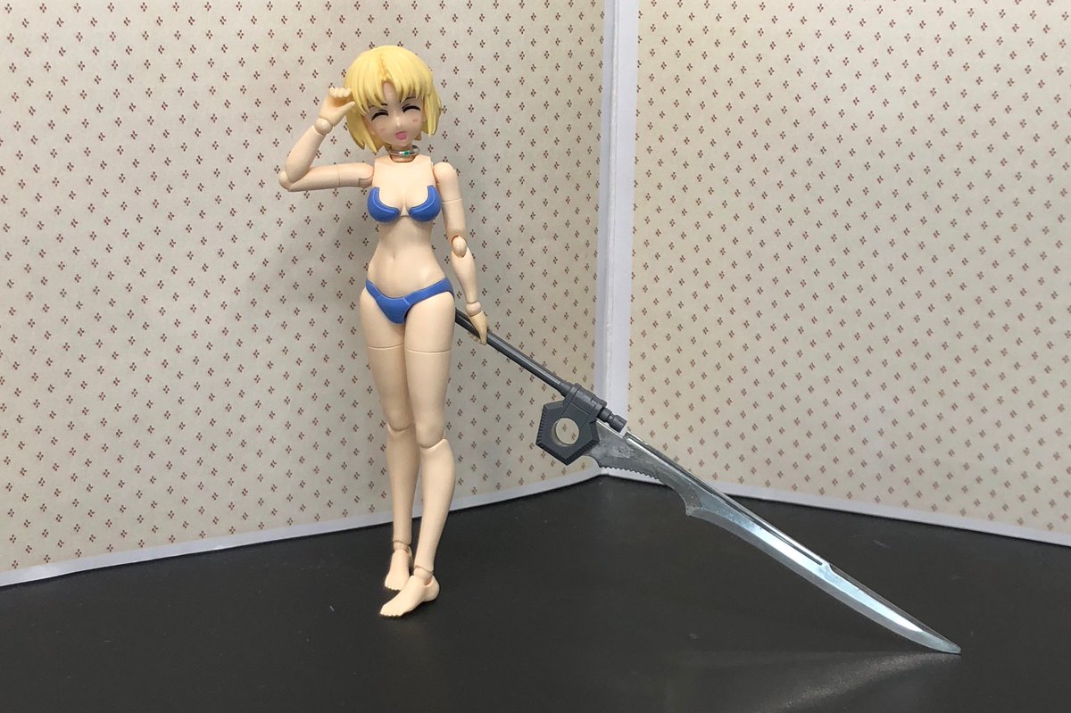 びっくらたまごの グランドスラムを 組み立てました!( ´ ▽ ` ) 刀身は ガンダムマーカーの メッキシルバーを塗って、ターナーのグロスバーニッシュでコートしてます(*´ω`*)うちのこが持っても ちょうど良いサイズ感ですね〜!٩(ˊᗜˋ*)و #ガンプラ #30MS #うちのこシスターズ