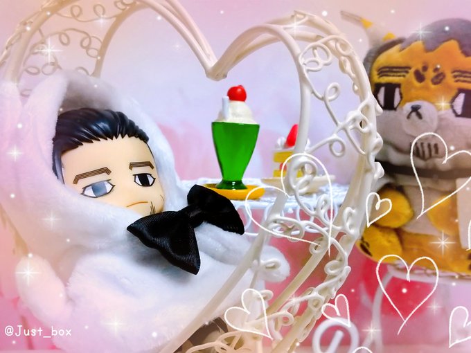 2月21日【ねこ】(フライング) 急に呼び出されてネコミミケープを着させられ謎のセットで撮影して状況がよく分からないが満更でもない尾形 その光景を見つめるフォゼ尾 #深夜のねんどろ撮影60分一本勝負 #ぬいぐるみの時間 #うちのねん尾 #フォゼ尾といっしょ #金カムぬい撮り部