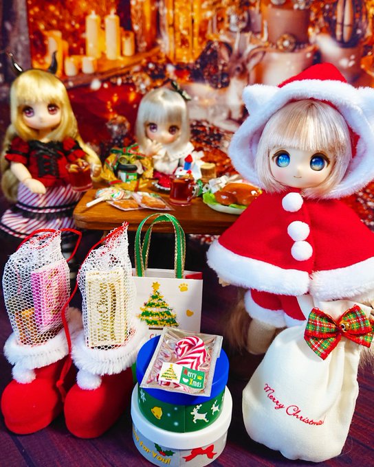お題【メリークリスマス】 パーティー始まるよ🎄🎅🎁✨ #今夜のドール撮影120分一本勝負 #クリスマスドール撮影2021 #ドールでクリスマス #うちの子とメリクリ #アゾカツ #シュガカツ #シュガーカップス #ショコラーラ #ビスケティーナ #うちのこかわいい