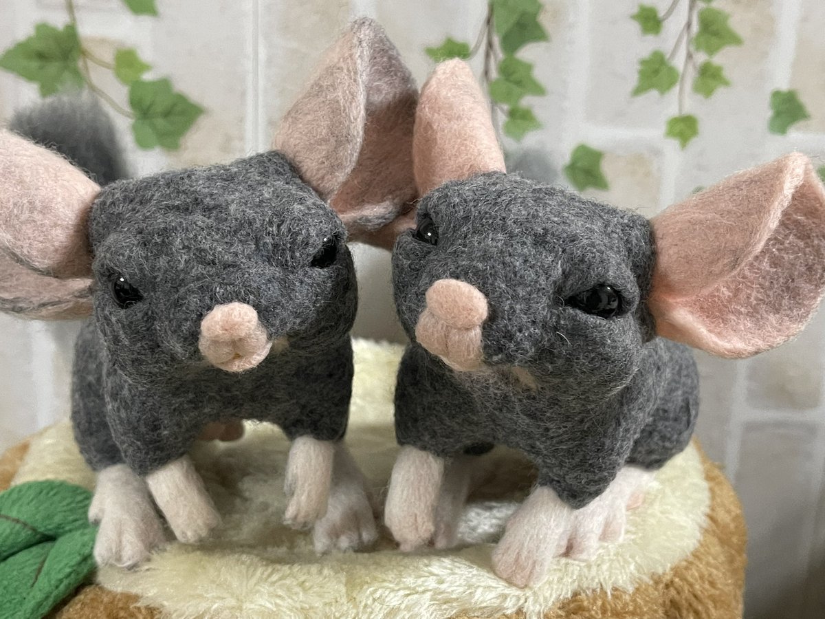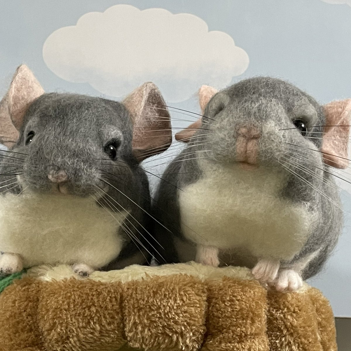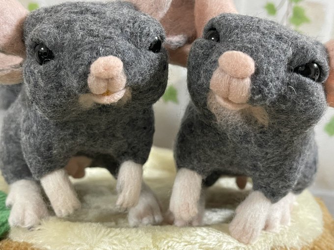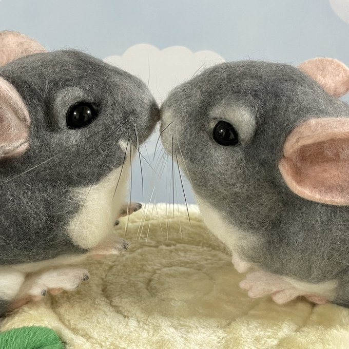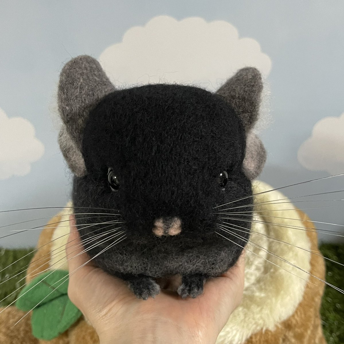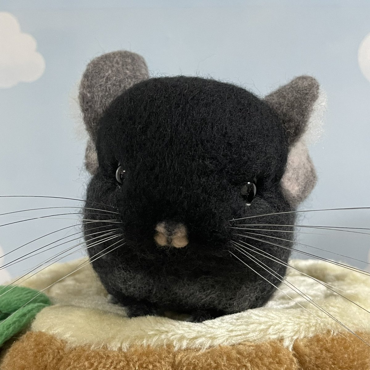 あざと可愛い黒豆ちゃん完成❤️ 写真1枚から作って スムーズに1発OK💖😆 今回からお髭用テグス長いの入手できて リアルに見えるように色も塗ってます❣️ 進化✨いい感じ✨ #チンチラ #うちの子ぬいぐるみ #羊毛フェルト