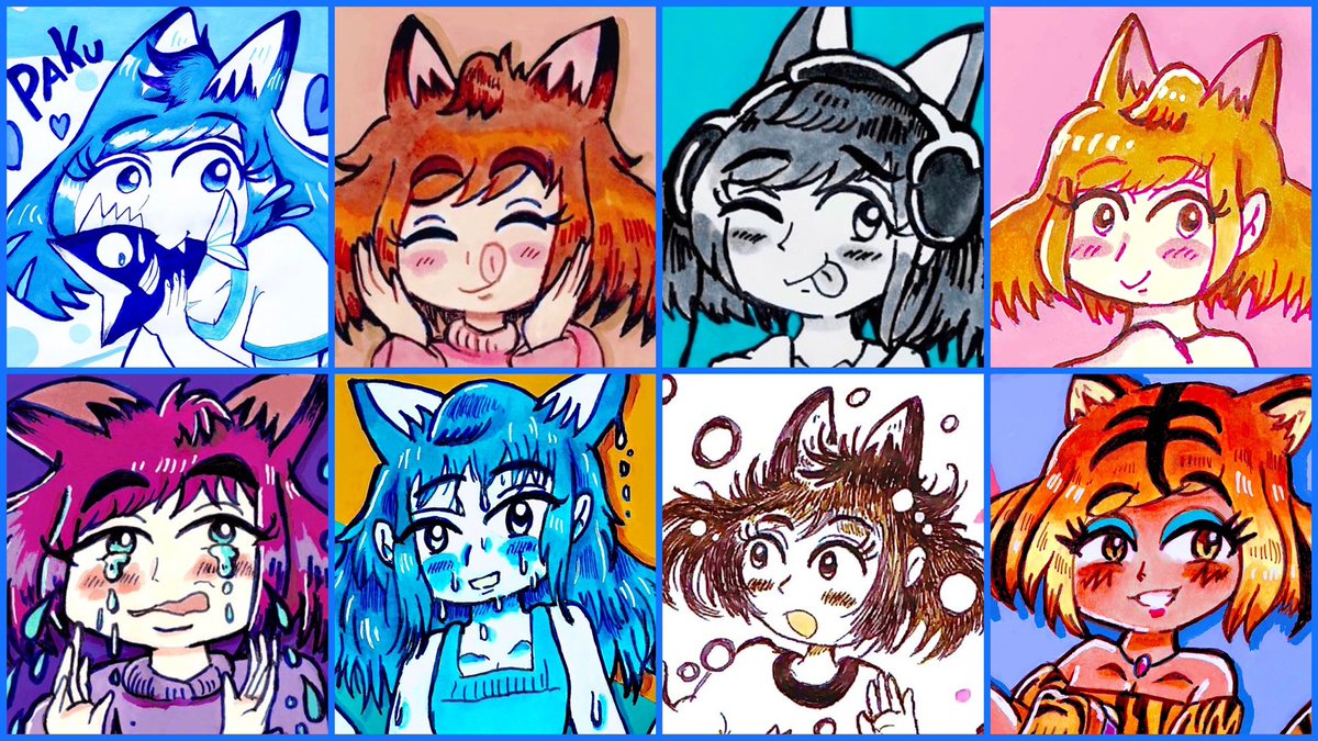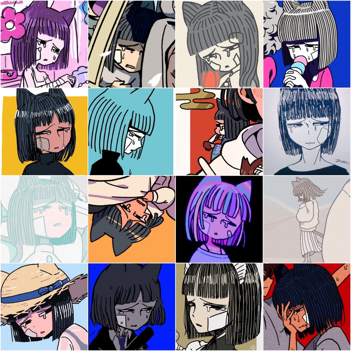自分の心を乱す存在の擬人化「バッドキャッツ」。「自惚」のハイ、「不満」のイラ、「憂鬱」のベソ、「無気力」のキョム。 #BADCATS twitter.com/i/moments/1092… 絵がたまってきたので顔詰め合わせ第2回!思ったより描いてたので、最近のは入らなかった💦 #うちの子の顔だけ詰め合わせると楽しい