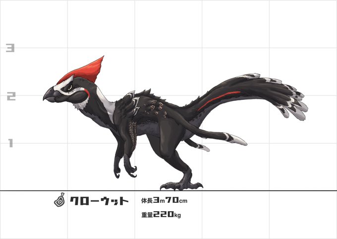 #うちの子モンスターバース 親玉を中心に群れで行動する夜行性の鳥竜種、 非常に狡猾で頭が良く、漁夫の利を狙うことが多い。 頭がいいため、躾けると人の言葉を少し理解する。 近隣では家畜を守るための用心棒として使う人も多い。