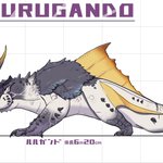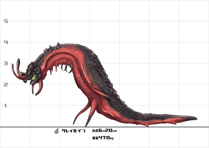 クレイルゾン 体長6m20cm 重量470kg 夢想の樹海で確認されたモンスター。 洞窟の周辺をナワバリとしており、2〜3匹で群れを組んで行動する。 基本的には植物食だが、ナワバリ内に入った生物を獲物として躊躇なく襲うため、肉食として分類されている #イラスト #うちの子モンスターバース