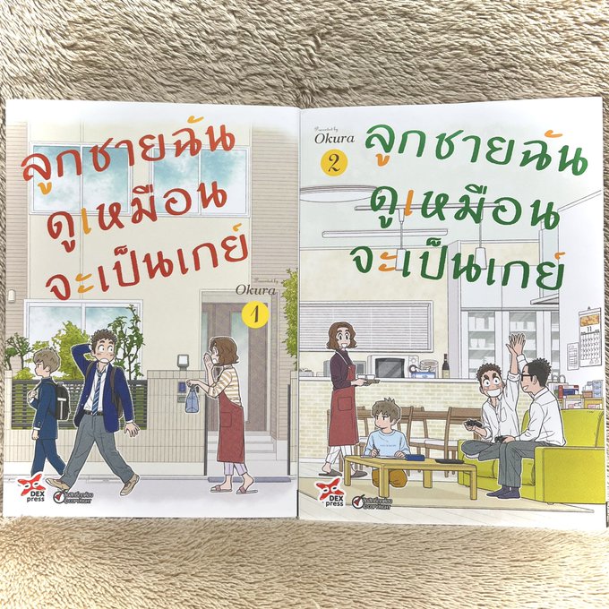 「うちの息子はたぶんゲイ」のタイ語版コミックス1・2巻が届きました。様々な国の方々に読んでもらえるのは嬉しさ8割、緊張2割…! タイの方々にも楽しんでいただけますように! #うちの息子はたぶんゲイ