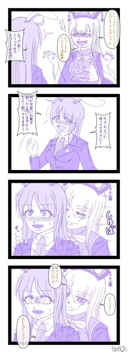 トリックアンドトリックは間違っていなかったので 玄関に出た時点で終わったうどんげちゃん。 #東方Project #イラスト #鈴仙・優曇華院・イナバ #うどんげ #純狐 #イラスト好きさんと繋がりたい