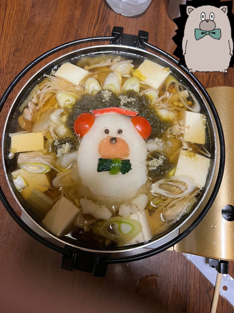 もう年明けたけど、うにぐり鍋作ってみました! おぼろ昆布すぐ水分吸っちゃうし、大根おろしするのめちゃくちゃ大変だった…あ、手足は崩壊しました★ #うにぐり鍋 #ずとまよファンアート @zutomayo