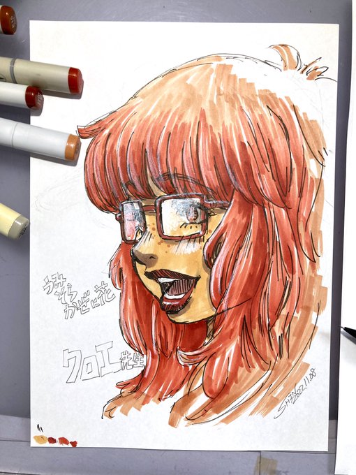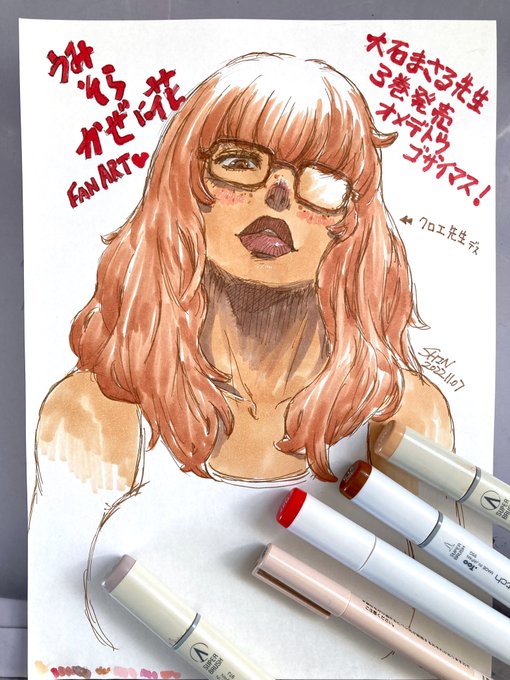 (´;ω;`) #うみそらかぜに花、ついに完結との情報を得た(コミック追従派なので刊行待ち)ので、ずっと描いてみたかった大好きなアミさんに挑戦したが、やはり想像以上に難度が高い。 特に #大石まさる 先生の色センスは凄すぎて真似にもならなかったですごめんなさい #1日一点とにかく描く