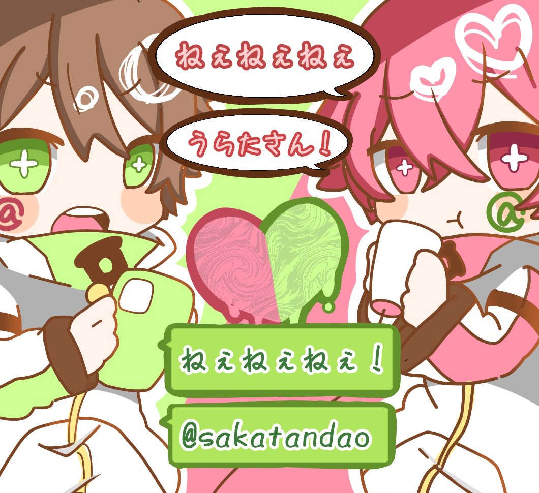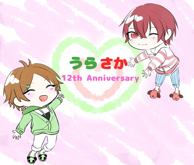 💚12th Anniversary❤️ 12周年おめでとうございます➰🎀 友達でありライバルであり相棒である2人が大好きです.ᐟ .ᐟ 次こそ2人の玉座見に行かせてくださいね.ᐟ .ᐟ #うらさか12周年 #うらさか活動12周年 #うらさか12周年おめでとう #うらたぬ王国の美術館 #坂田です #うらさか初コラボ記念日
