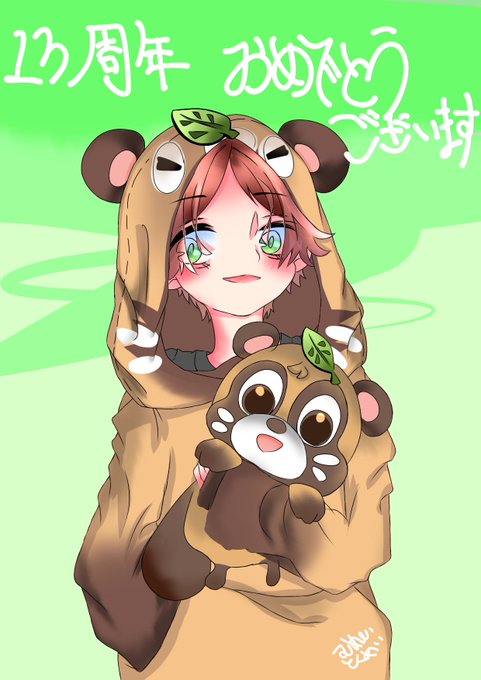 遅ればせながらうらたさん活動13周年おめでとうございます!!!!🎉🎊🎉 これからの活動も笑顔溢れる素敵なものになりますように………!!!!!💚✨✨ #うらたぬき13周年 #うらたぬき活動13周年 #うらたさん活動13周年 #うらたぬ王国の美術館
