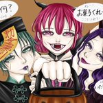うちの子ハロウィンver.2 ーおまけー 🔮「いたずらするわよ…♡」 🍄「お菓子くれーー!!」 🍀「ん?何?」 お顔もお揃いのペイントして仲良いなぁ🥴💕 こうしてハロウィンを楽しんだ3人だったとさ🎃👻 #うりえぎぃズ #オリキャラ #illustration #ハロウィンイラスト