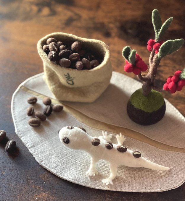 吉祥寺にあるコーヒーショップ、吉祥寺珈琲さんにオーダーいただいた作品。コーヒーゲッコーはお店の顔。少々アレンジしちゃいました。作るの楽しかったなぁ。吉祥寺珈琲さんのコーヒーとってもおいしいです。大ファン。 #羊毛フェルト #フェルティングニードル #needlefelting #うりぼうや作品