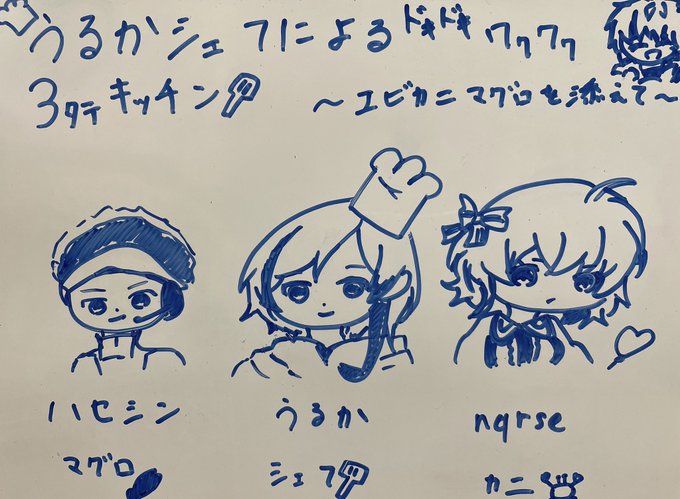 お疲れ様でした! めっちゃ良かった! #うるかシェフによるドキドキワクワク3タテキッチン〜エビカニマグロを添えて〜WIN #うるかーと #なるせかいたよ #ハセシンアート #イラスト好きな人とつながりたい