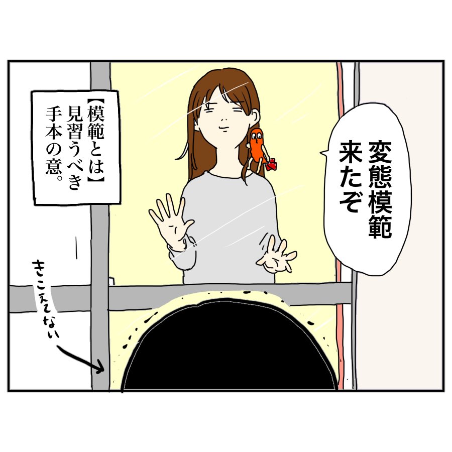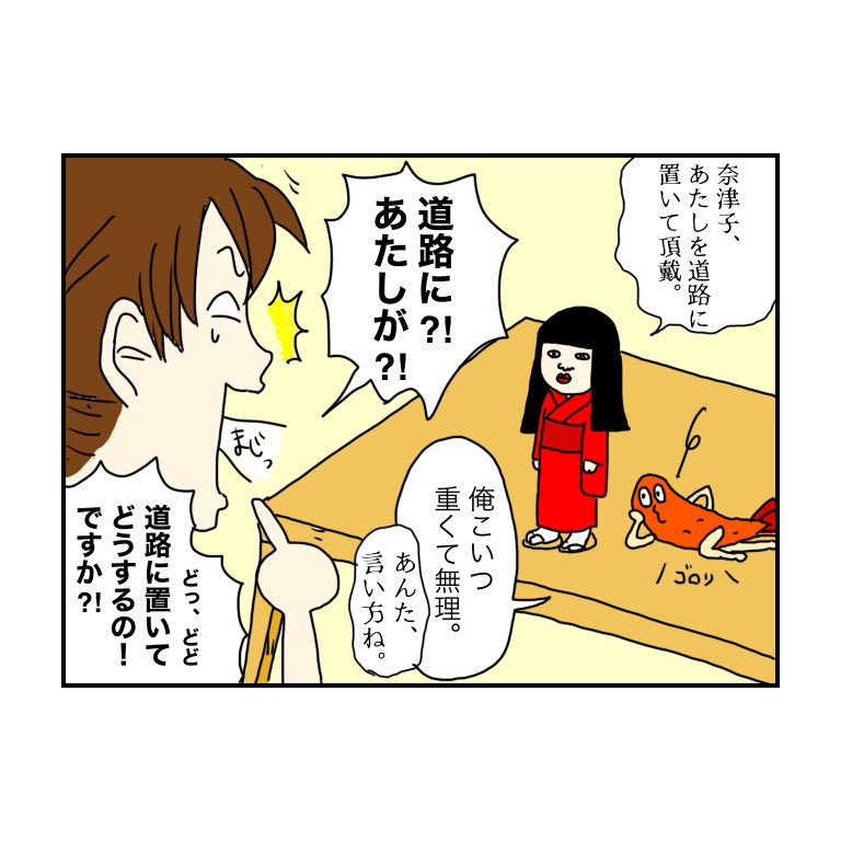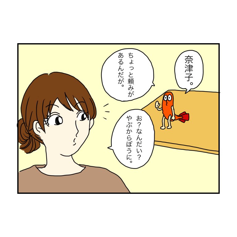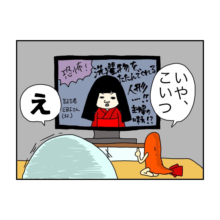 ♪ギリギリでイーツも生きていきたいからーあーあー♪常にギリギリ、えびフライの日常です。今日はこちら。 🍤市松子⭐︎爆誕🍤 えびフライの次に出てきたキャラは、市松子先輩でした。 いや、実際いたらまじでビビるよなぁ… #漫画が読めるハッシュタグ #えびフライの日常 #4コマ漫画