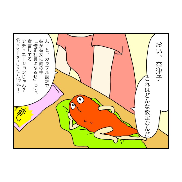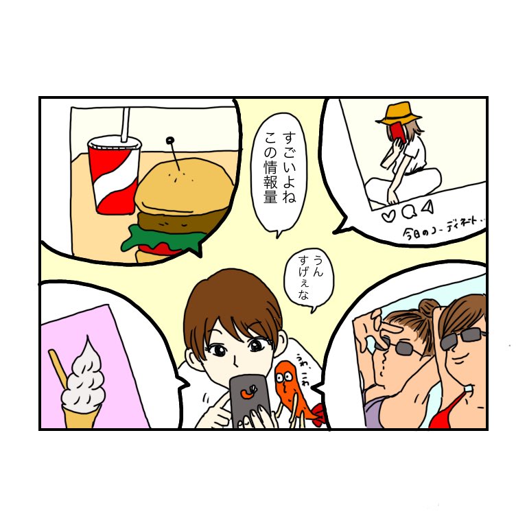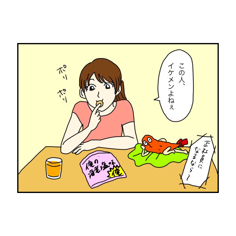 今日もhotなweatherだったね! みんな、水分補給、忘れたらいかんぜよ😉なんか久しぶりに発信する気がするわ!毎日するって言ってたじゃないって?そうね、予定は未定、その方が面白いでしょぅ?💋 🍤アイドル🍤 おにぎりって美味しいよね #漫画が読めるハッシュタグ #えびフライの日常 #4コマ漫画