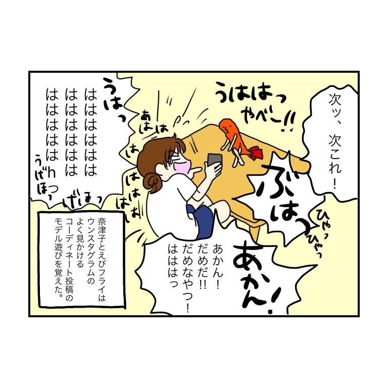 わーぉ全然漫画配信してないことに気付く。てなわけでえびフライの日常🍤 久しぶりだから話を忘れちゃったよ!ってそこのアナタ… 遡ればいいのよ😇 🍤奈津子のモノマネから🍤 アーアーアアアアア〜 #えびフライの日常 #漫画が読めるハッシュタグ #4コマ漫画