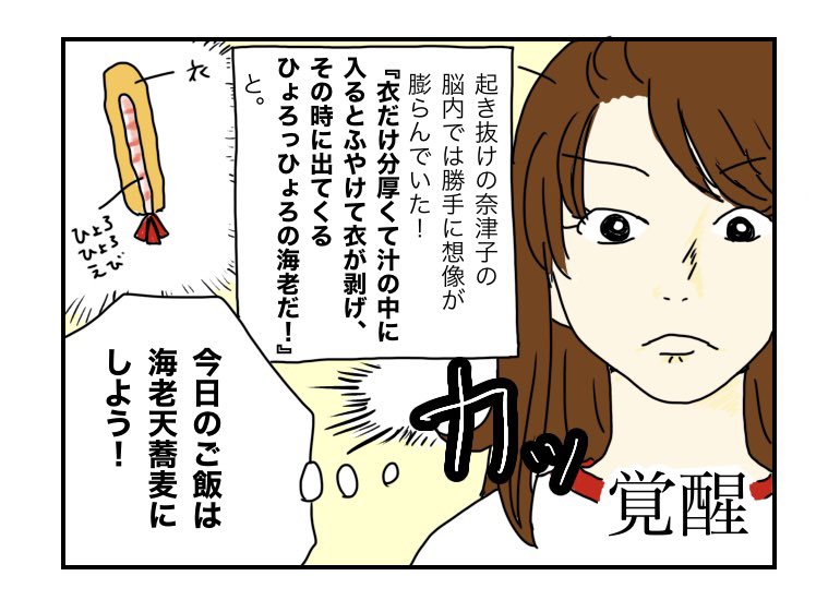 おろしそハンバーグは美味い そんな月曜日の夜🌉 今宵もえびフライの日常をお届けよ! 🍤夏の風物詩🍤 この辺りからえびフライワールドが覚醒してくるのである。 #漫画が読めるハッシュタグ #えびフライの日常 #4コマ漫画