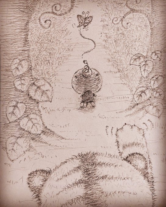 絵本風の3人と老木。 絵本はカラーで描こうかな。 この作風も極めたいし? モノクロは好きです。 #illustraion #drawing #illustraionart #picturebook #childrenbook #cat #catlover #猫好き #ともだち #えほん