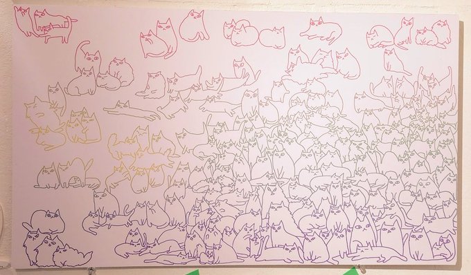 #えぼ展 本日最終日です。(18時まで) 今回この「猫になった」を展示しています。2020年11月からDISH//が紅白に出場するまで猫になり続けた(描き続けた)ものです。実はメンバーをイメージして描いた猫も隠れてたりします。 こちらは今後展示予定無いので良ければ是非見に来てくださいね! #イラスト twitter.com/suzuki_lisam…