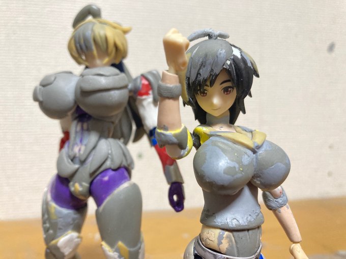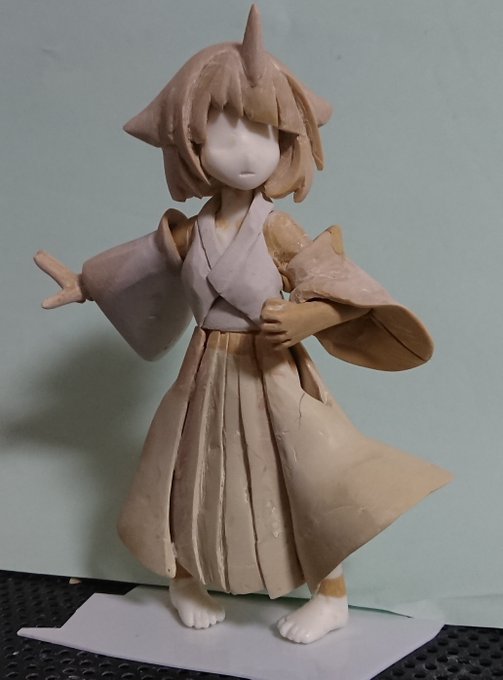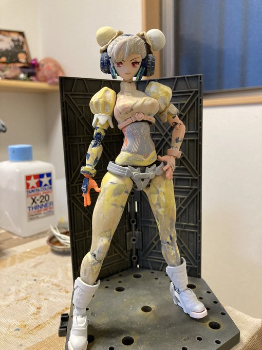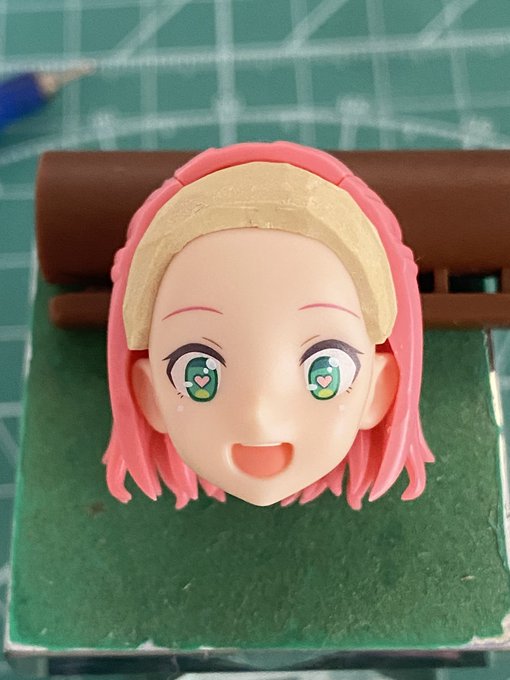 ①土台を作る ②髪をパーツかし少しずつ付ける ③やする 離型剤使うと作業しやすいけど、後から取れたりするので、パテが固まったら瞬着で固定するの必須です。 #メガミデバイス #おいでよエポパテ村
