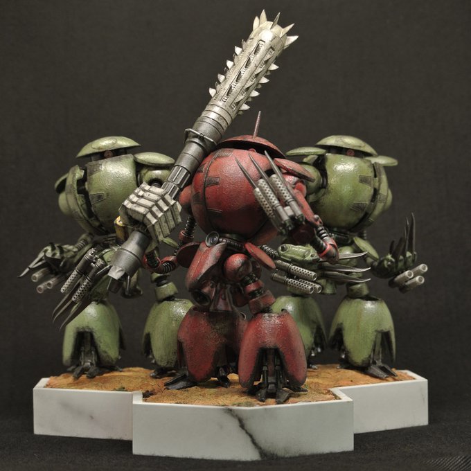 「ターンXをボコれ!」 コレン機、ソシエ機、メシェ機からなるミリシャカプル小隊完成しました😆 3Dプリンタ製のフルモデリングで理想を追い求めました。 中々良い質感が出せたのではないでしょうか? #ガンプラ #今月作ったプラモ晒そうぜ #多分私しかやっていない #おいでよ筆塗り部 #3Dプリント