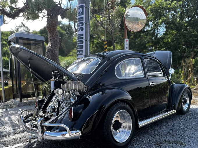 #あなたのみどり色の作品を見せてください #おいでよ自動車模型へ タミヤ1/18 ホンダNⅢ360、何年か前に再販されたものです。 ボンネットと両側ドアが開く豪華仕様で、二輪のものを転用した空冷4サイクル2気筒SOHCの360ccエンジンも再現されています。 助手席に置かれた南沙織のレコードに注目😆