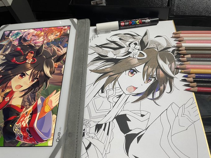 こけしちゃん配信聴きながら 塗り進めて1時半(´-`).。oO そろそろ寝ます! 前髪と目と口に色入りましたー! #おいなぎつき #イラスト #アナログイラスト #模写 #色鉛筆画 #ウマ娘プリティーダービー #キタサンブラック #イラスト拡散 #フォロワーさんの推しを描きたい #フォロワーさん増やしたい