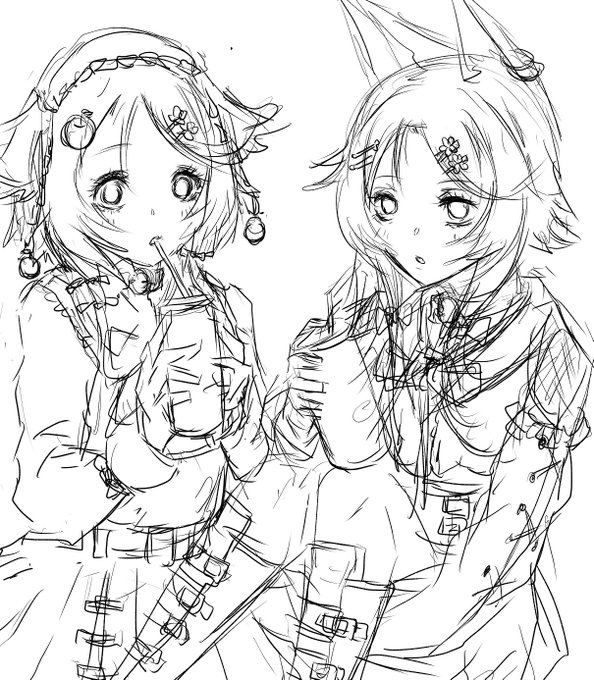 地雷系ミコちゃん桃&黒下書き ╹꒳╹ 普段服のデザインとか余り考えないから難しい… ゚꒳゚💦 マスク着けようかと思ったけど、ケモ耳っ子ってどうやってマスク着けるんだ? ゚꒳゚ #みこあーと #櫻歌ミコ #おうかみーてぃんぐ