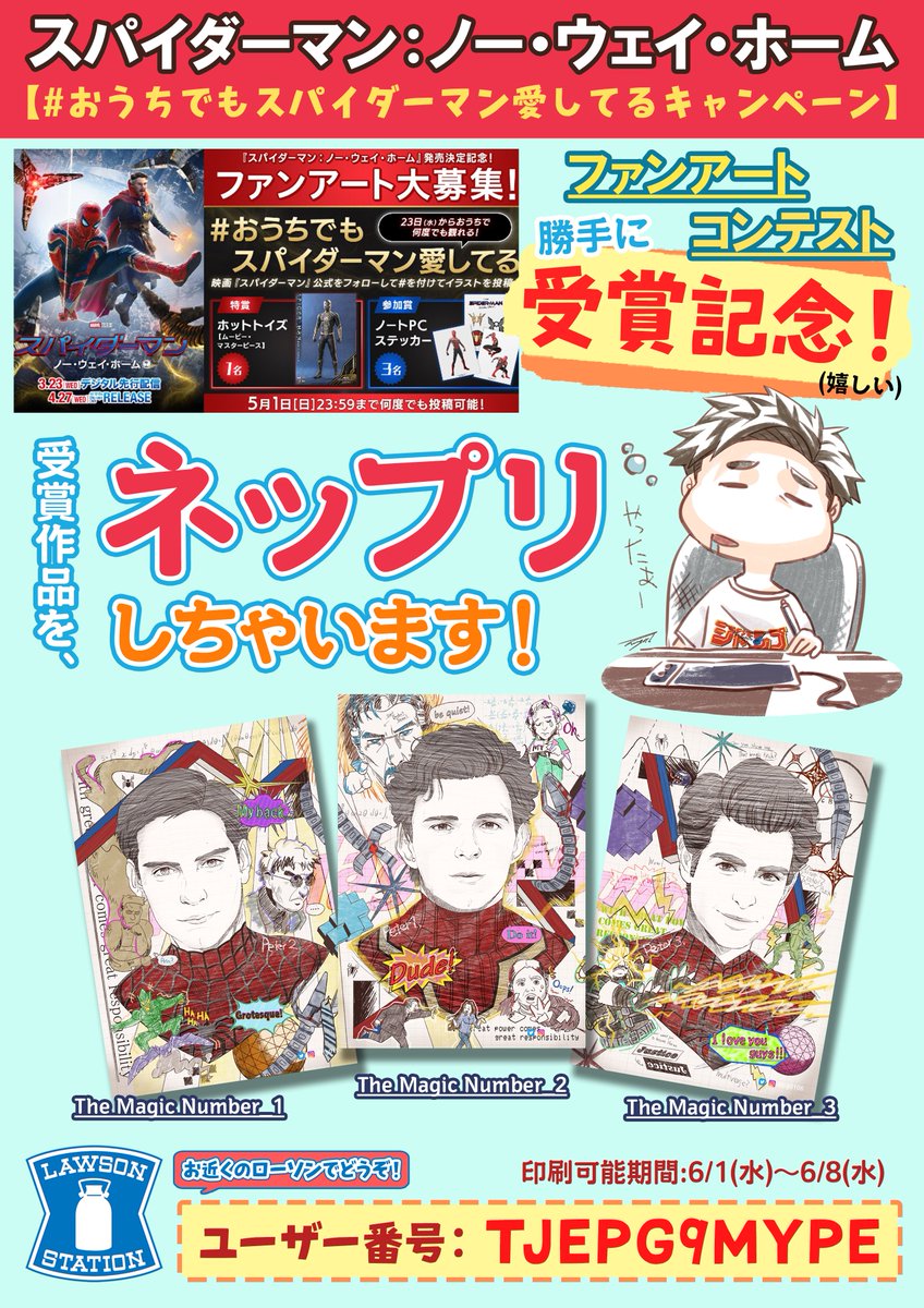 【勝手に】受賞おめでとう記念! ネップリしちゃいます📸🎉✨ 皆様是非!!!!!!!!! ●ユーザー番号:TJEPG9MYPE ●ローソンにて本日〜6/8(水)迄 ●価格:1枚30円~(2Lサイズは80円) #おうちでもスパイダーマン愛してる #スパイダーマン #ノー・ウェイ・ホーム #ファンアートコンテスト twitter.com/SpidermanfilmJ…