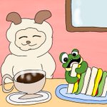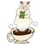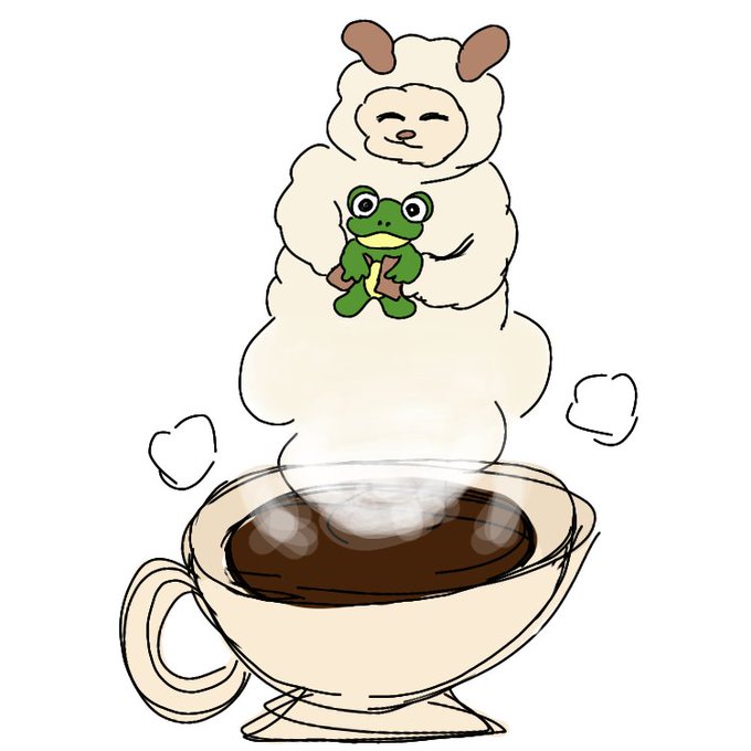 ヒツジトカエルのブレンドコーヒー✨エチオピアとブラジルのブレンドです。中煎りでさっぱりした風味を楽しみました! #ヒツジトカエルcafe #イラスト #珈琲 #スペシャルティコーヒー #コーヒー #おうちカフェ #cafe