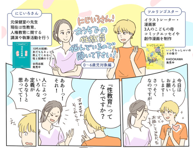 性教育は、からだだけでなく心や人間関係の話 (1/4) 漫画家ツルリンゴスターさん(@turu96)が元保健室の先生で性教育講師のにじいろさん(@beingiscare)に性教育の疑問をぶつけたレポート漫画! #おうち性教育 #漫画が読めるハッシュタグ