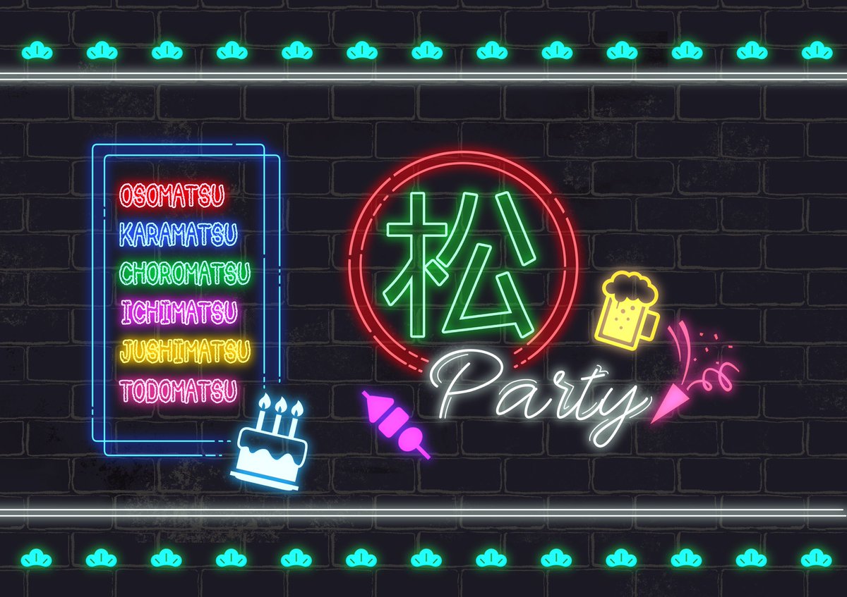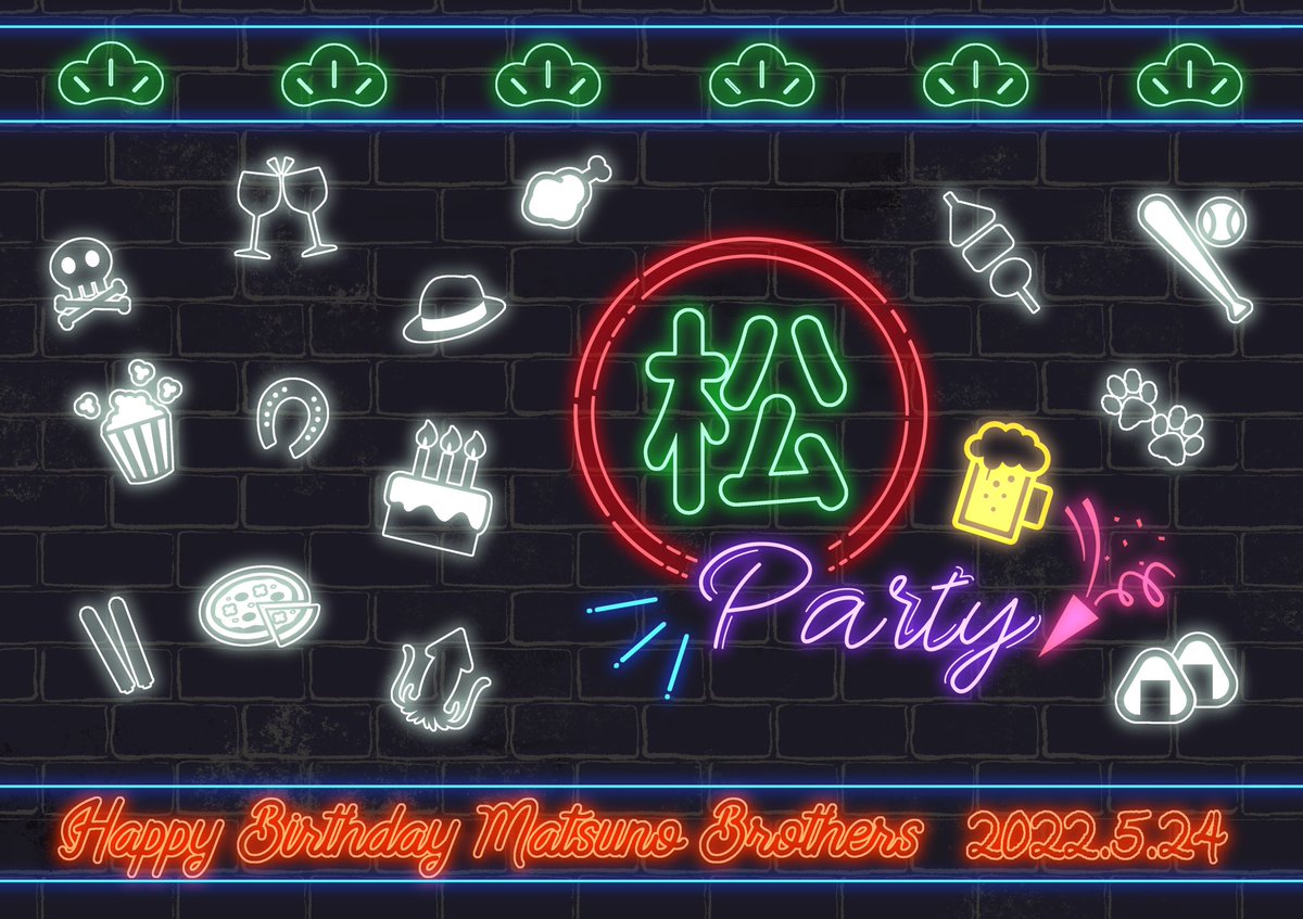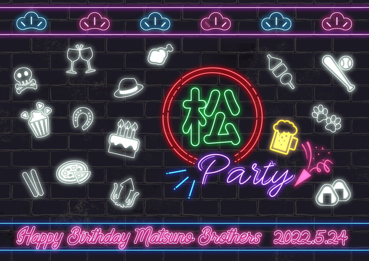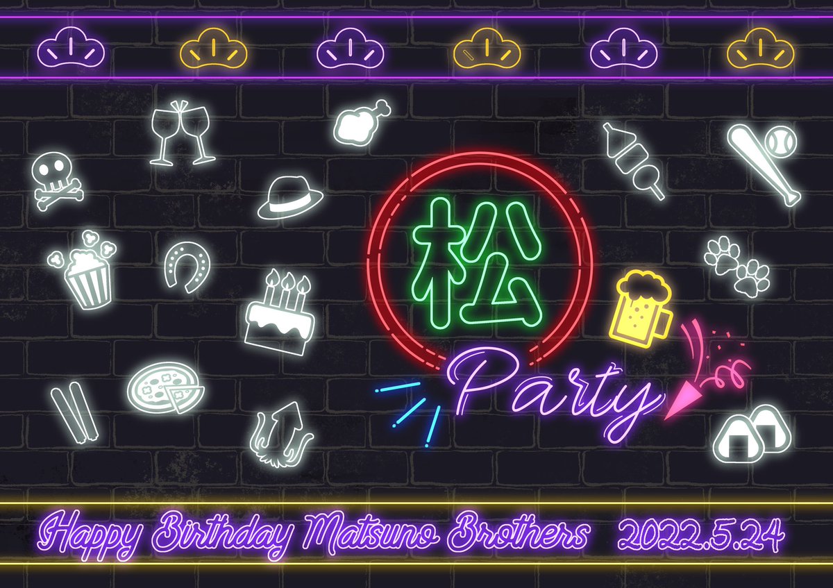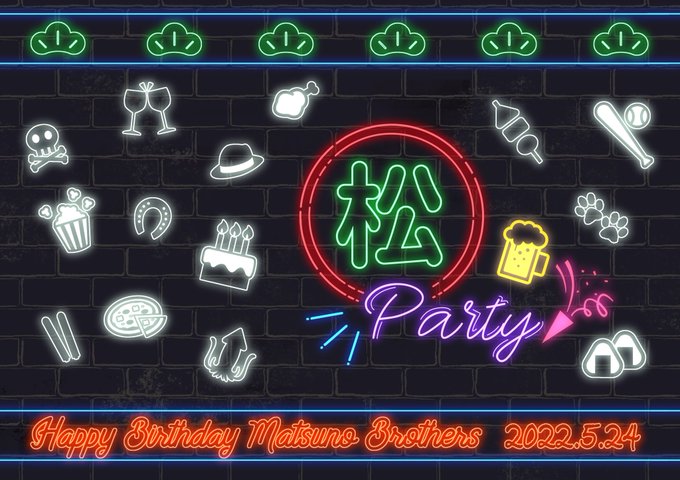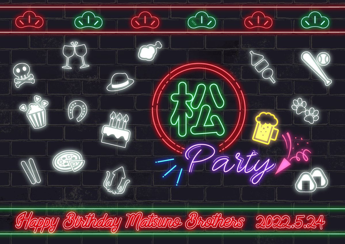 #おうち松パ内装部 のネオン別Ver.追加しました! 2〜4枚目は相棒松です🥳 プリントしたりしておうち松パーティーやぬい撮りetcご自由にお使いください😊ご自身のイラストや写真載せるなど加工してアップいただいても大丈夫です! #おうち松パーティー #松野家6つ子生誕祭2022 #6colorでお祝い