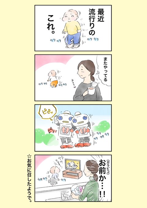 🐙ままごと中のガラピコを上手くあやしたキュリオさんがじぃじ枠として認定された回🐙「やるじゃないですか…」と言い大量のオモチャを引きずって戻ってきたシーンのバブピコは過去一番の戦闘力を感じた。 #ガラピコぷ~の神回を語り継ぐ有志の会 #おかいつ