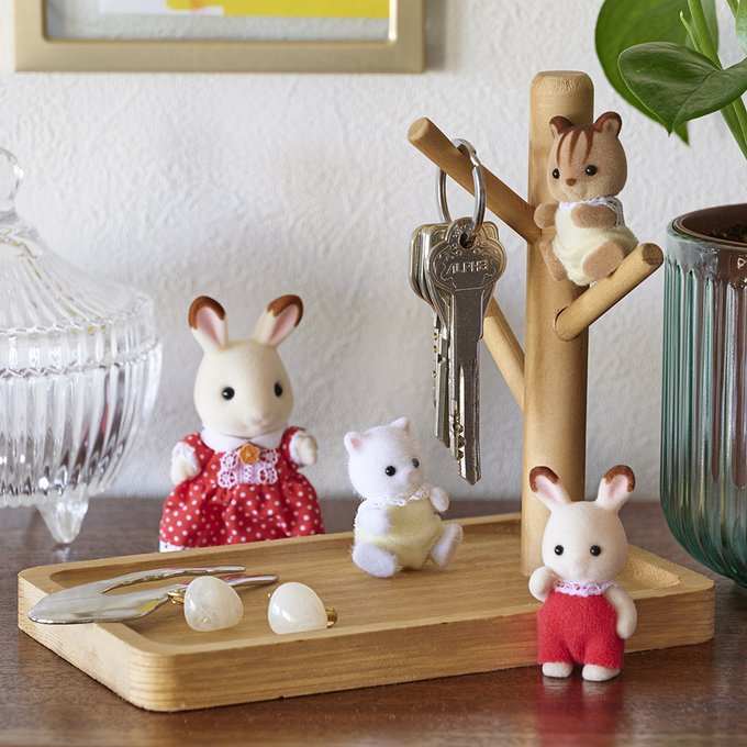 キートレイにシルバニアファミリーのお人形を飾ってみました✨ お人形たちが見守ってくれると、忘れ物がなくなるかもしれませんね😊 #シルバニアファミリー #シルバニア #いってらっしゃい #おかえりなさい #いつもそばにいるよ #インテリア #シルバニア赤ちゃん #シルバニアインテリア