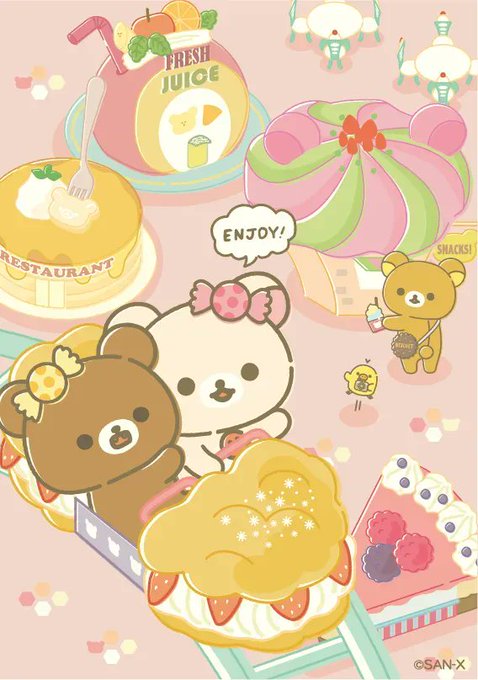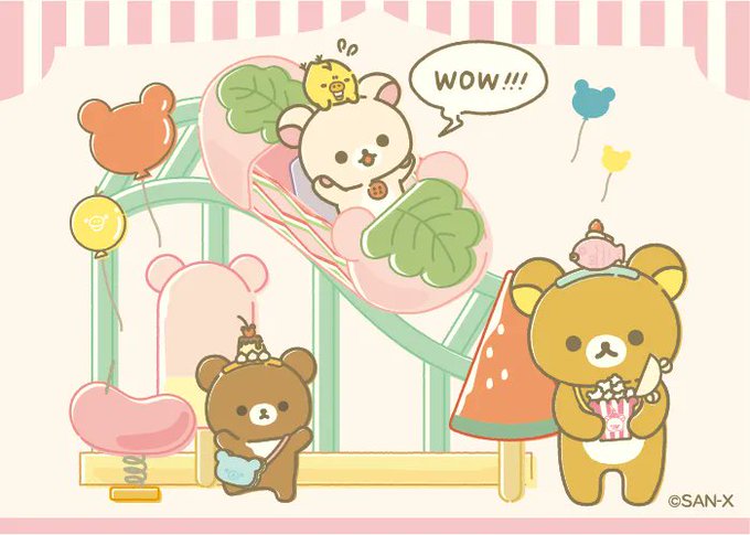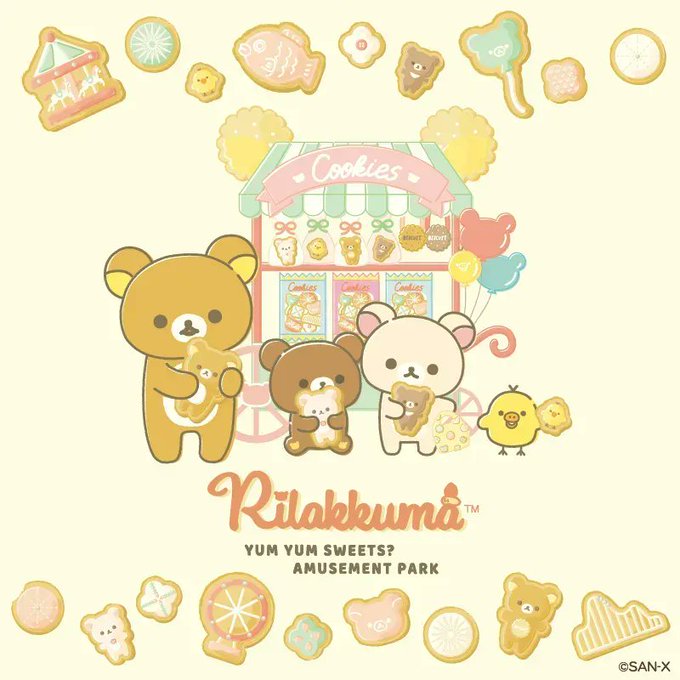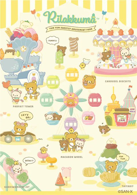 ✨7 月発売予定✨ 「 #おかしな遊園地 」テーマ🎠 ちょっぴりレトロでポップな雰囲気がおしゃれなお菓子の遊園地テーマです。 リラックマたちがおいしそうなお菓子に囲まれて楽しい一日を満喫する様子に、幸せな気分になれちゃう♪ san-x.co.jp/rilakkuma/camp…