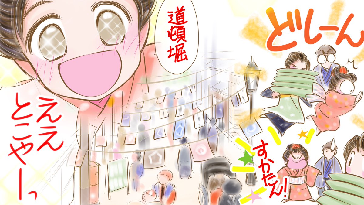 #おかわりおちょやん #おちょやん絵 第6話💕 奉公先は道頓堀の芝居茶屋。道頓堀は千代にとっておとぎの国のような賑やかで華やかなところでした。 1ヶ月間様子見で働くことを許された千代。女中頭のカメさんにいろいろ仕事を与えられ、「おちょやん」としての日々が始まりました。