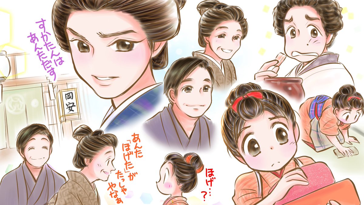 #おかわりおちょやん #おちょやん絵 第15話💕 みんなの協力のおかげで、シズは延四郎にお礼を言うことができた。そしてそのひと月後、延四郎はこの世を去った。病を患いながら最後の舞台を見事に演じていたのだった。 年が明け、数え18になった千代はそのまま岡安で働くことになった。そこへ…