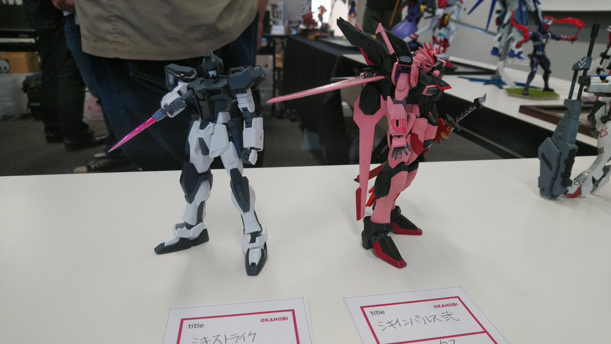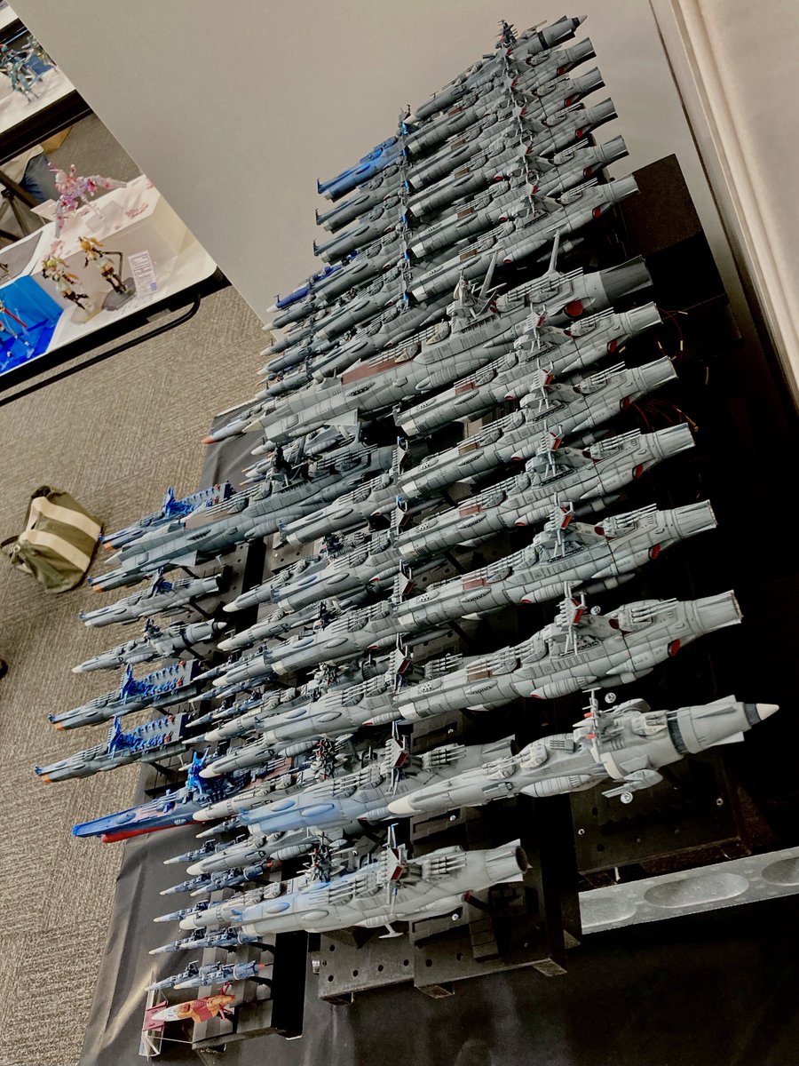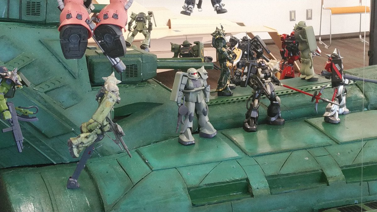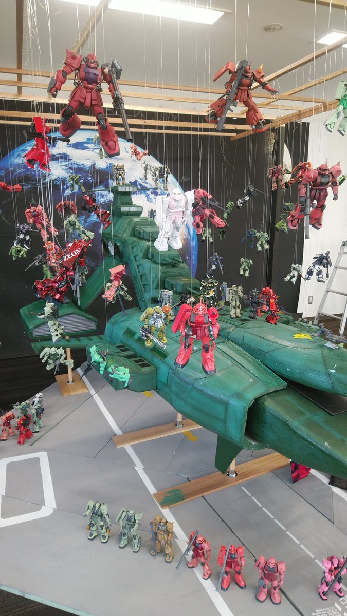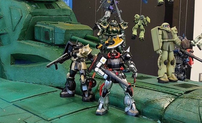 おかホビ2021が開催中! 私の作品を展示して貰いました! 銀基調のザクで、頭が赤いのが1.0、頭が黒いのが2.0です。 ムサイの誘導役貰えるとは、感激です!! #おかホビ2021 #ガンプラはどんな自由な発想で作ってもいいんだ #ガンプラの画像貼るとRTされると聞いて #ガンプラ好きと繋がりたい