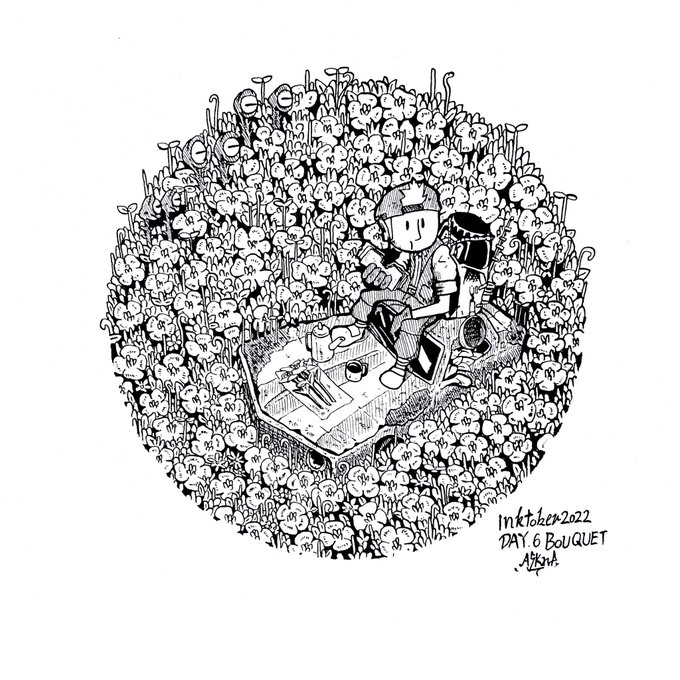 ヴィクターの 未知の島調査6日目 これだけあればいっぱい花束作れるな(´・Д・)」 inktober2022 day6 BOUQUET ☆ #inktober #inktober2022 #インクトーバー2022 #おきなわ #絵描きの輪