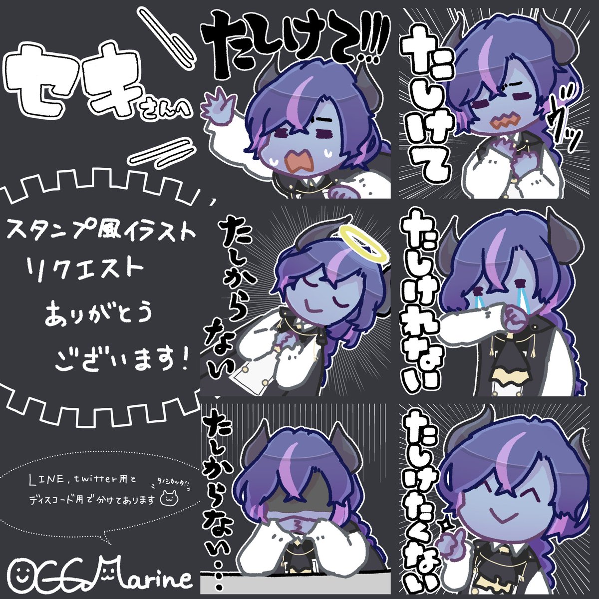 セキさんからskebリクエスト頂きました!ありがとうございます!!😭 スタンプ風イラストということで、セリフをいくつか頂いてあとは自由に描かせていただきました✨もとのキャラデザも可愛くて、描いててめーっちゃ楽しかったです🙌✨リクエストありがとうございました✨ #おぐまりねこみっしょん twitter.com/ogg_zip/status…