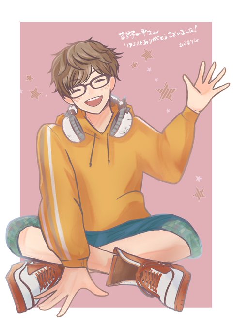 #おぐまりねこみっしょん 誕生日skeb感謝祭〜〜〜〜!!!の納品! 吉野一平さん(@ippeittern )からのリクエストでご自身Vのイラストです♪背景はpsdで分けてあるので、使いやすいほうでご利用ください♪