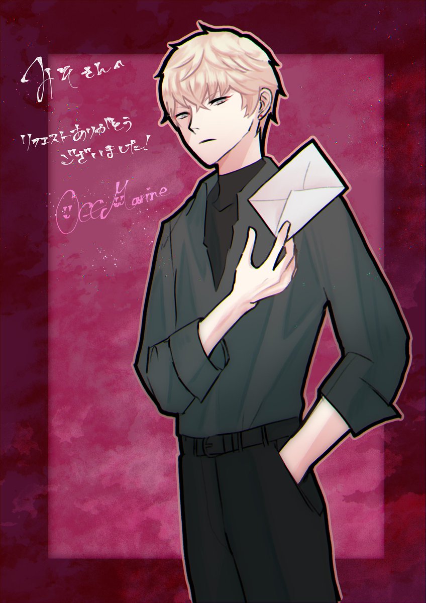 誕生日企画納品です!おまたせしました!!!! みそさん(@milkmilk12_TRPG )のドロップアウトディスパイアのHO届け人さんを描かせていただきました!めちゃかっこいい届け人さん描かせていただき感謝です🍀✉️skebリクエストありがとうございました!!! #おぐまりねこみっしょん