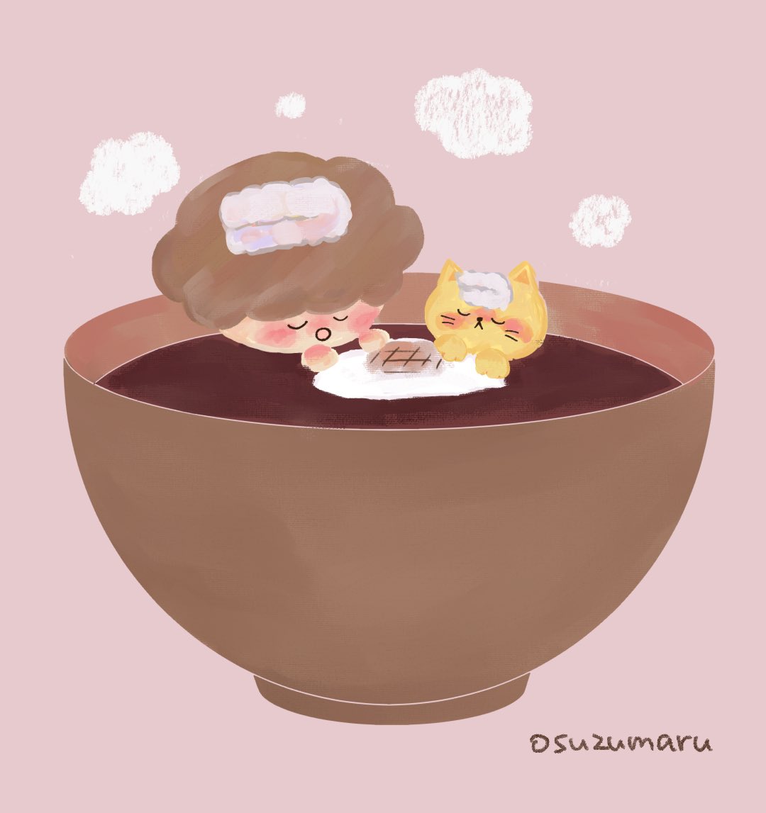 クリスマスが終わって一気にお正月モードに。大好きなあんこメニュー、おしるこの季節! #イラスト好きな人と繋がりたい #イラストレーターさんと繋がりたい #イラスト #Illustrator #illust #イラストレーター #線画イラスト #線画 #イラストレーション #おしるこ